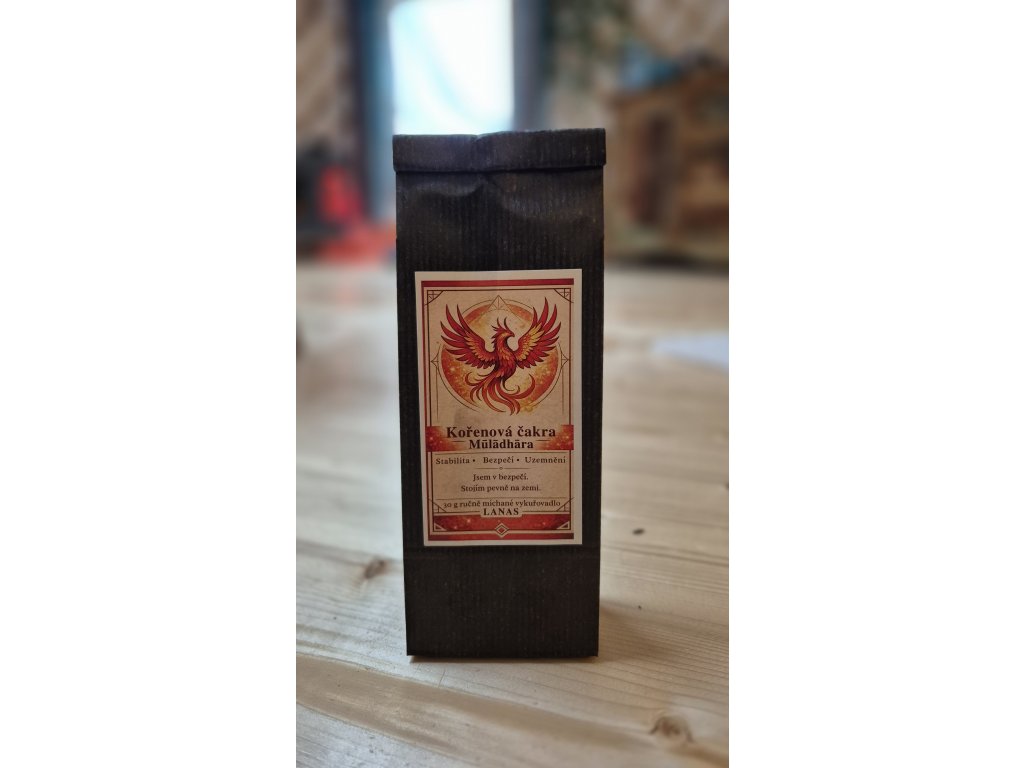 Kombinace složek pro vykuřovadlo první čakry, byla zvolena tak, aby podpořila hluboké uzemnění, pocit jistoty a propojení se sebou samým. Směs působí teple, zemitě a stabilizujícím způsobem. Dračí krev – silně ochranná pryskyřice, která podporuje pocit bezpečí a stability. Santalové dřevo červené – uzemňuje, zklidňuje mysl a pomáhá návratu do těla. Kořen anděliky – tradičně používaný pro posílení kořenové energie a vnitřní opory. Zázvor – zahřívá, aktivuje životní sílu a podporuje odvahu jít vpřed. Měsíček – přináší jemnost, harmonii a pocit vnitřního klidu.