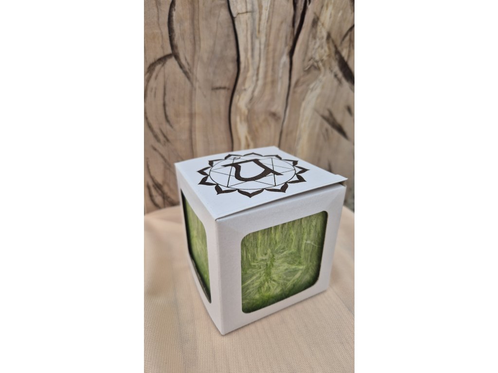 Zelená kostková svíčka z krystalického vosku – do prostoru přináší klidnou a harmonickou atmosféru. Srdeční čakra přináší pocit harmonie, klidu a vyvážené energie do prostoru.