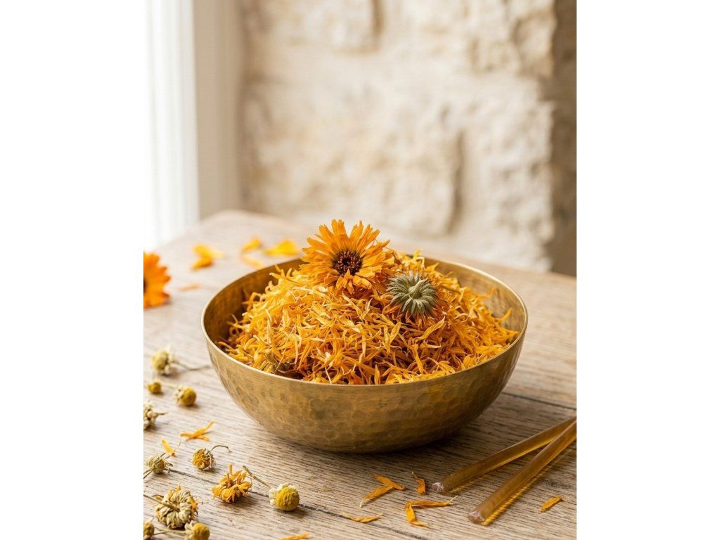Vykuřovadlo měsíček lékařský je ceněné pro svou jemnou, lehce bylinnou vůni a hlubokou symboliku, která je po staletí spojována se světlem, ochranou a životní energií. Jeho zářivě oranžové květy připomínají slunce a v mnoha tradicích představují teplo, vitalitu a přirozený řád.