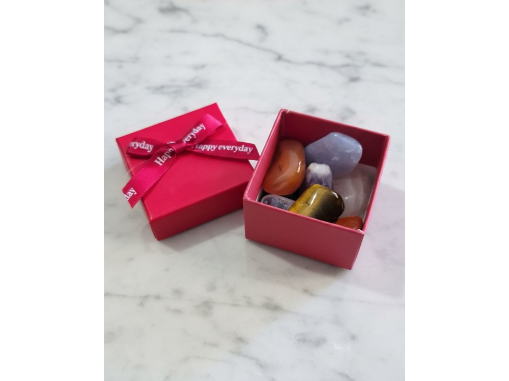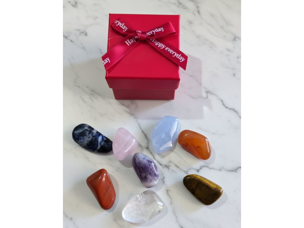 Tato kolekce obsahuje sedm přírodních kamenů, které barevně i symbolicky odpovídají jednotlivým energetickým centrům – od kořenové čakry až po korunní. Kameny jsou hladce opracované, příjemné do ruky a vhodné pro přikládání na tělo, meditaci i osobní rituály.