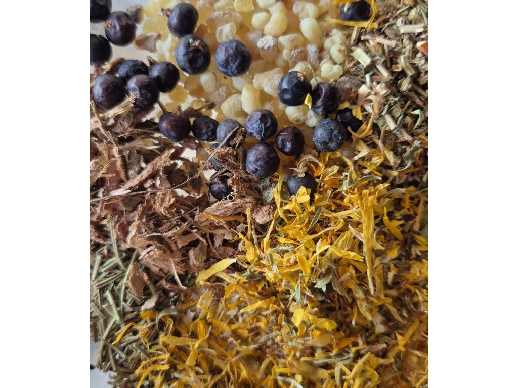 Složení: olibanum, jalovec, třezalka, dubová kůra, měsíček, rozmarýn