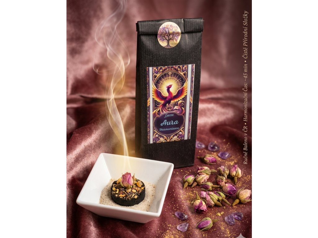 Vykuřování patří mezi nejstarší způsoby symbolické očisty prostoru i člověka. Kouř z pryskyřic a bylin se v různých kulturách používá po tisíce let při rituálech zklidnění, meditace a harmonizace prostoru. Směs Aura vychází z těchto tradic a je inspirována starými vykuřovacími recepturami, které kombinují očistné byliny s harmonizujícími květy.